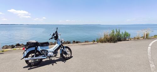 クロスカブ 散歩 茨城県 霞ケ浦 2023/7/2 天気は晴 気温はメチャ暑い。(たぶん30度くらい) 今日はいつもの銚子方面ではなく、たまには違うところに!と考えた。 大多喜、鴨川、鋸山・・・、と考えたが以前 行って景色が良かった霞ケ浦にした。 ↓ 良かった…