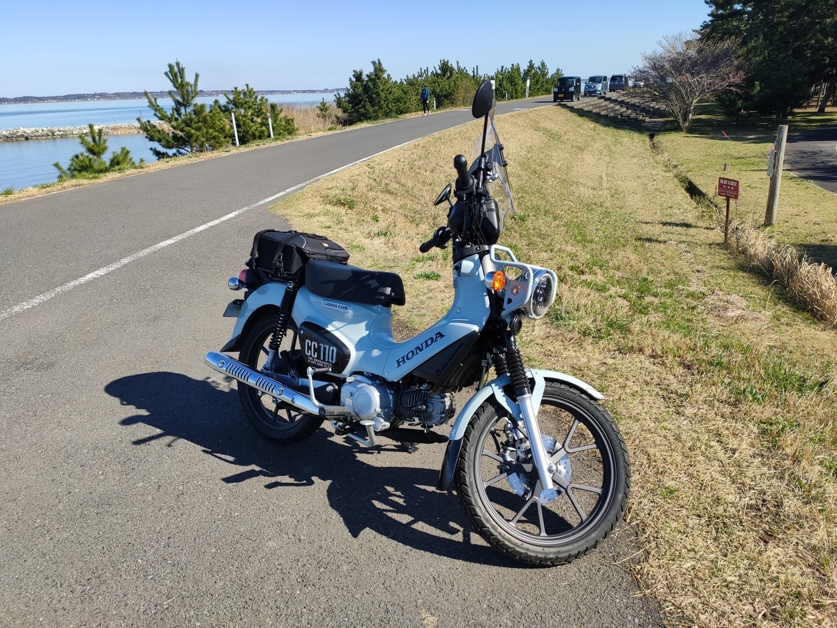 帰りはまっすぐ帰らず、霞ヶ浦のほとりで持ってきたウエスで、日向ぼっこしながらクロスカブの汚れを落とそうと思い、霞ヶ浦にある和田公園に行ってきました。