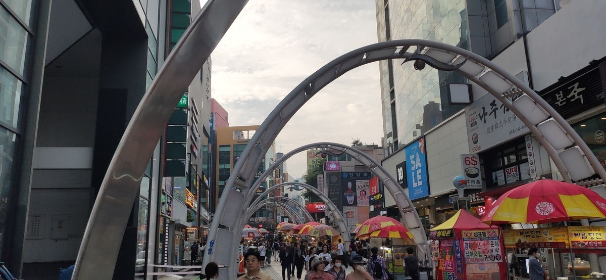 乗り換え含め、釜山空港(金海国際空港)からチャガルチまで約60分。