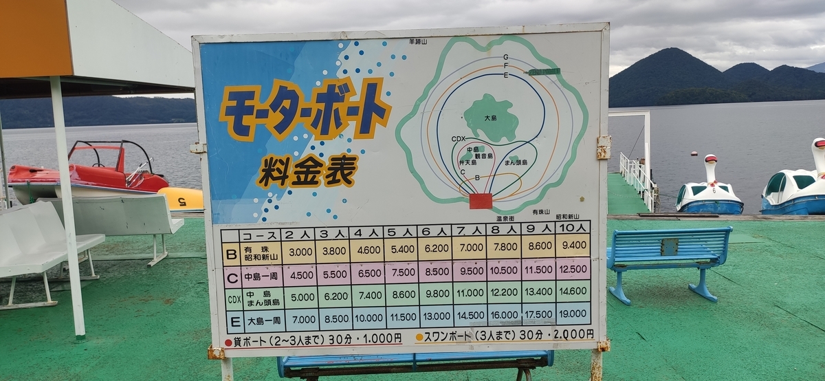 洞爺湖をモーターボードで回れます。
