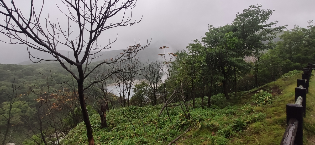 傘を買う、あるいはカッパを買ってまで地獄谷のブクブクを観に行く気にはなれず、車内から地獄谷が見えないのかと思いまして、周辺の小道をグルグルと回ってみました。