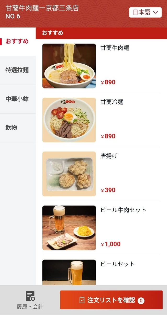 この店もメニュー専用のQRコードを読むと専用のアドレスに飛んでメニューが見れて注文が出来る。