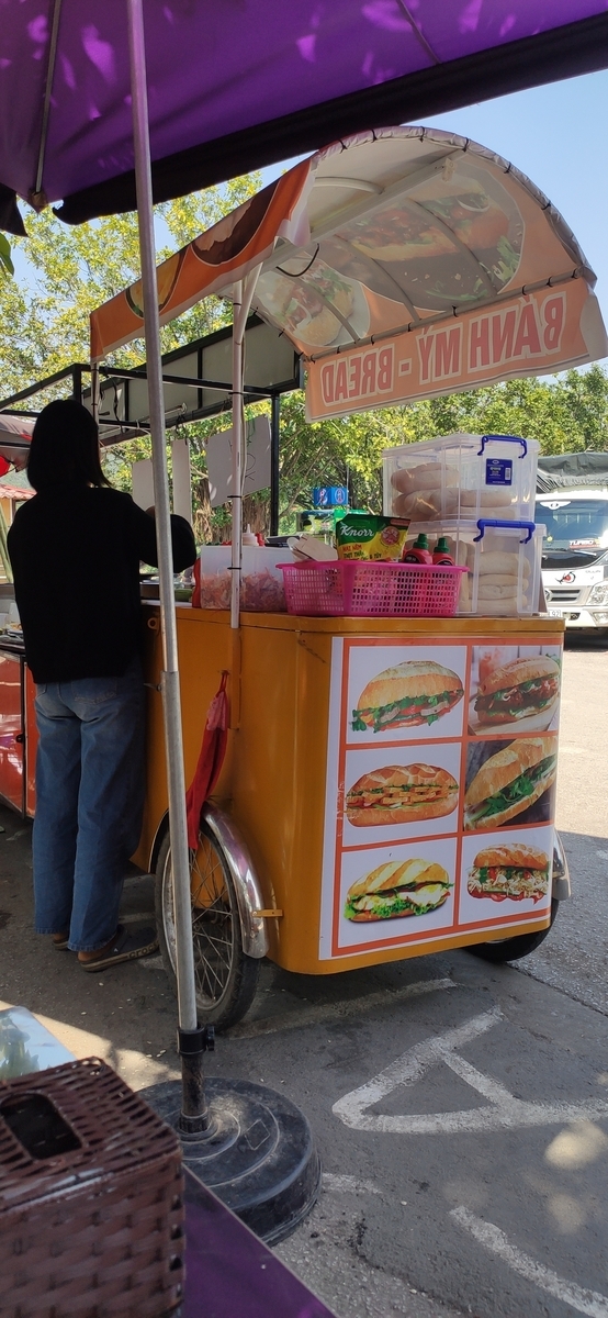 そんなこんなで、昼飯はタムコックボート乗り場にあったバインミー屋さんでバインミーを食べることから物語は始まります。