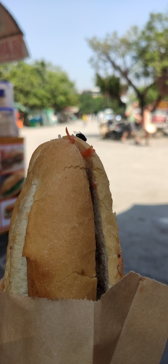 ニンビン産のハエ君がバインミーを私よりも先に食しているではないか!!!