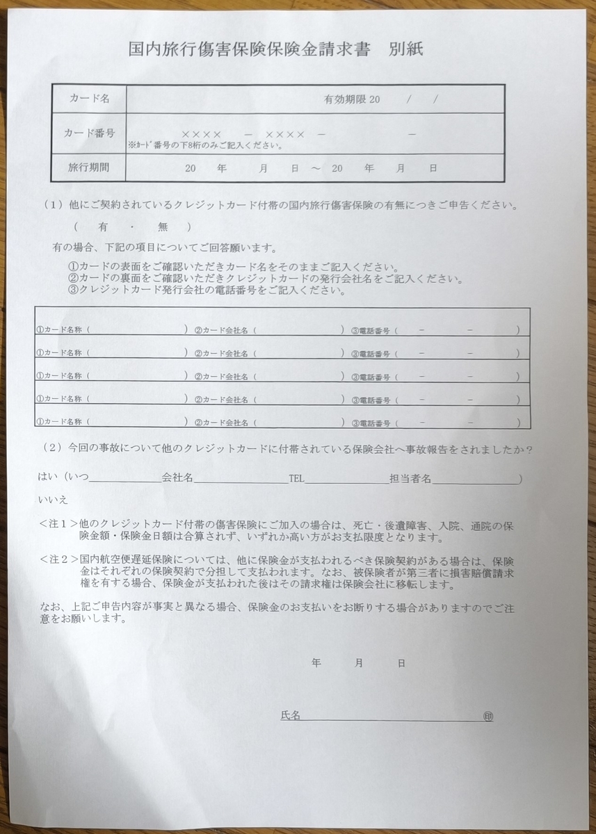 実際の申請書は、記載内容について難しいことはありませんでしたが、せっかくの経験なので国内旅行保険の申請を記事にしました。