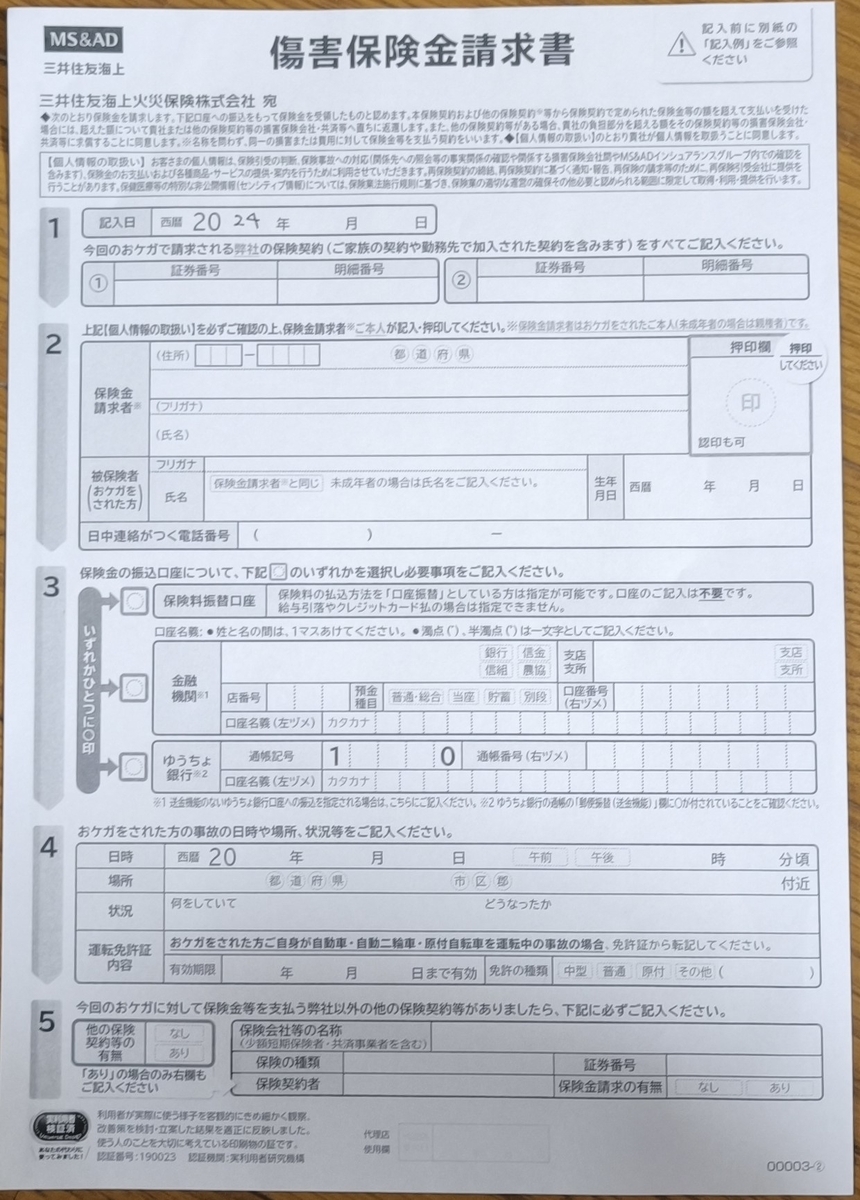- 傷害保険金請求書